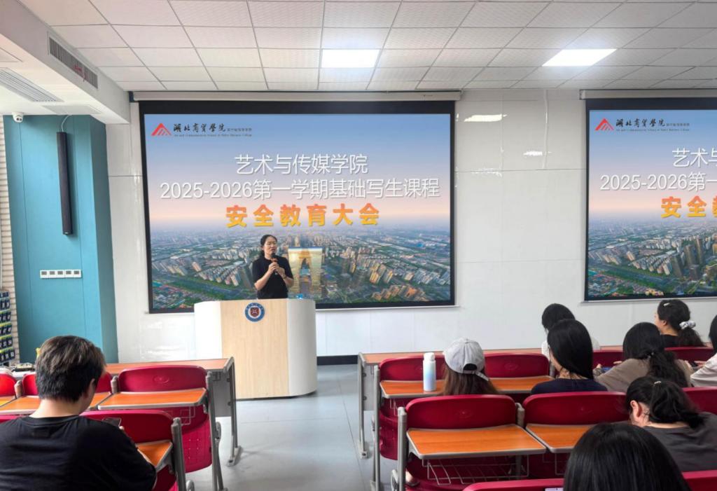 刘玉洁书记就安全与纪律作重点强调。她要求全体师生必须牢固树立“安全第一”的思想,严格遵守写生纪律,服从带队老师统一管理,切实注意人身与财物安全。她特别提醒同学们要文明出行,尊重当地风俗,展现湖商学子的良好精神风貌,并预祝大家学有所成、平安返校。