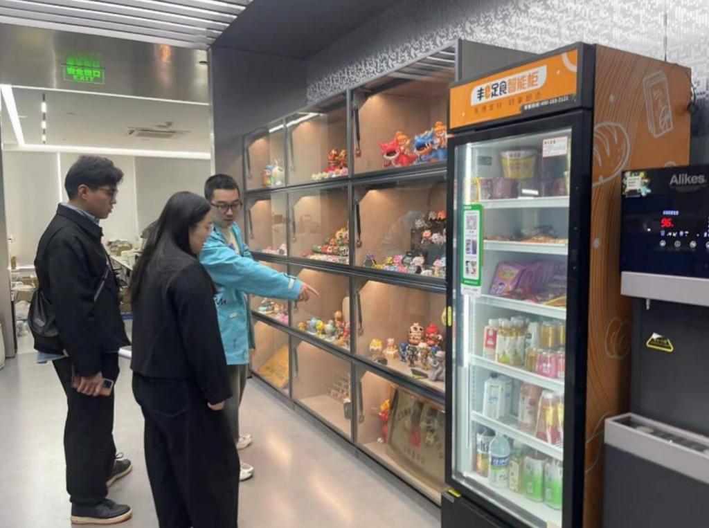 在潮代互动总监平田老师的陪同下,学院教师团队参观了公司的设计中心、技术研发部门和项目制作区域,深入了解企业在数字媒体设计、潮玩IP、短剧拍摄等领域的业务布局与创新成果。