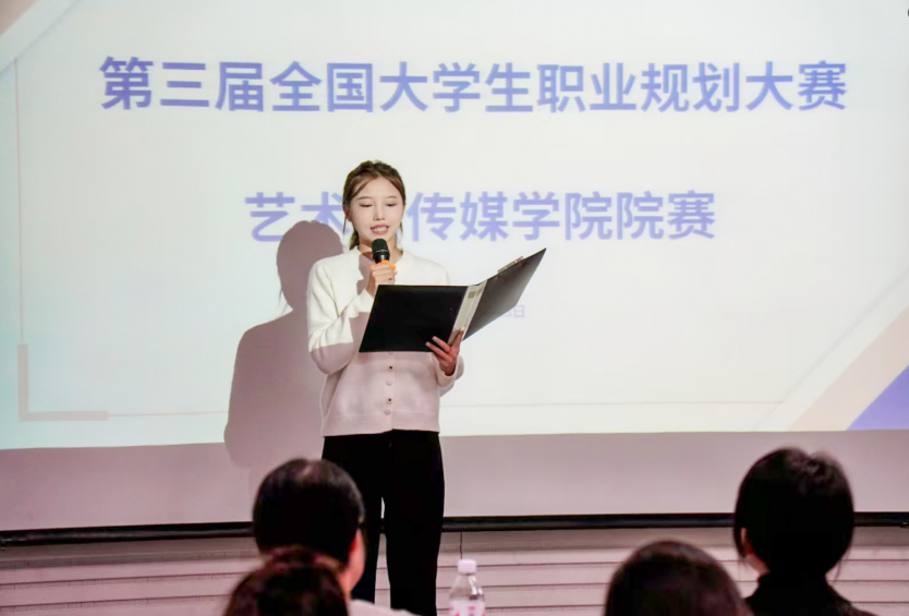 大赛以“筑梦青春志在四方,规划启航职引未来”为主题,分成长和就业两个赛道进行,16名参赛选手们依次登台,围绕自我认知、职业环境分析、未来规划路径等方面进行了精彩阐述,展现了艺传学子清晰的职业思考与积极的精神风貌。