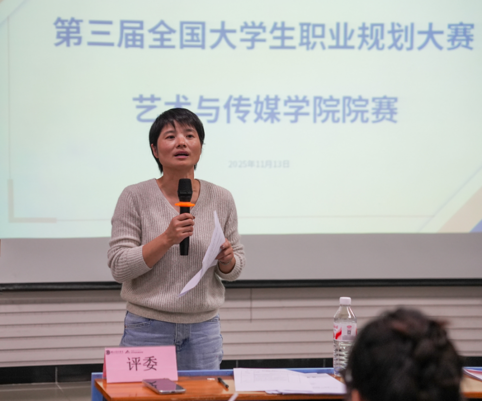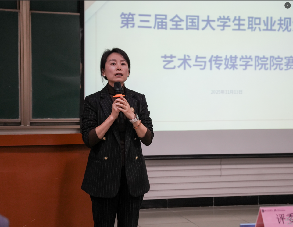 为增强大学生职业规划意识,指导学生及早做好就业准备,艺术与传媒学院于2025年11月13日,在综合楼C-402举行了第三届全国大学生职业规划大赛院赛。艺术与传媒学院党总支书记刘玉洁、艺术与传媒学院分团委书记李熇阳、招生与就业指导处主任曹琴、招生与就业指导处代雪茹及学院就业专员杨秋佳参加了会议。会议还邀请到武汉热热数据科技有限公司项目组负责人危创担任本次大赛的嘉宾与评委。