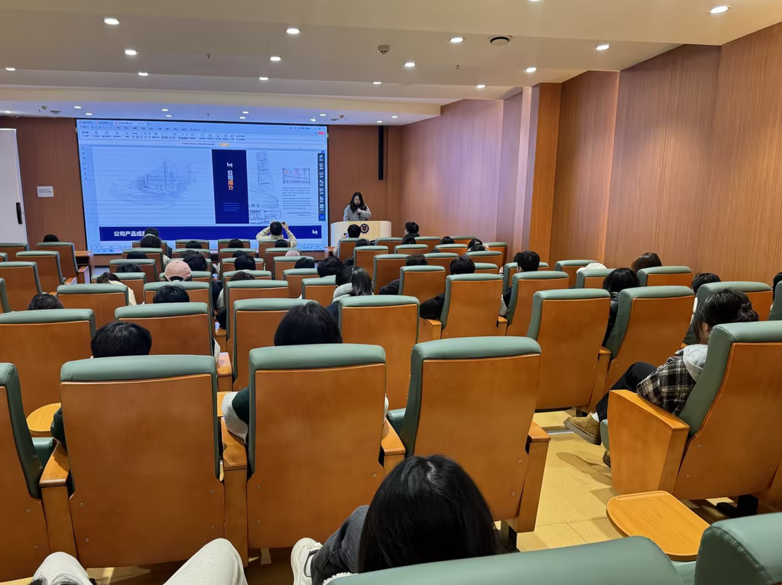 武汉辉耀映画广告发展有限公司成本部专员王琪向在场师生全面介绍了公司的发展历程、核心业务与行业优势。王琪通过案例视频展示,生动呈现了公司在电力行业宣传中的技术实力与创意理念,让学生直观感受专业知识在实际项目中的应用场景。