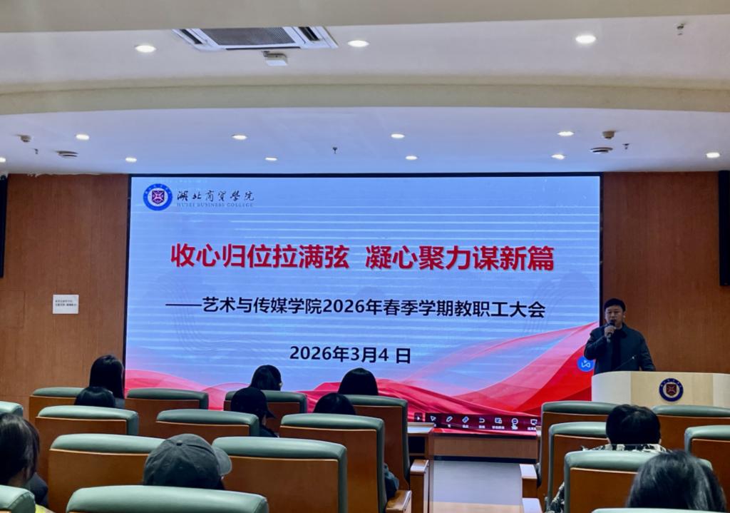 为全面贯彻落实学校新学期教育教学工作部署,统筹推进学院高质量发展,3月4日上午,艺术与传媒学院在图书馆一楼报告厅召开新学期全体教职工大会。学院领导班子成员及全体教职工齐聚一堂,共同谋划新学期工作方向,凝聚发展共识。