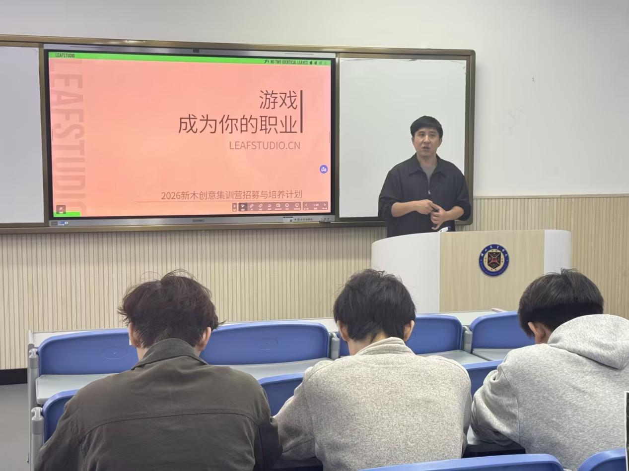 宣讲会上,吴麟系统介绍了新木网络科技的发展历程与核心业务。该公司成立于2014年,总部位于上海,在武汉、成都、西安、南昌等地设有分支机构,现有全职员工400余名。作为腾讯、网易、字节跳动、米哈游、bilibili等头部游戏公司的核心美术供应商,新木网络科技深度参与了《原神》《王者荣耀》《英雄联盟》等知名游戏的美术制作,业务涵盖游戏美术全流程服务、游戏信息流广告制作投放及专业技能人才培养。