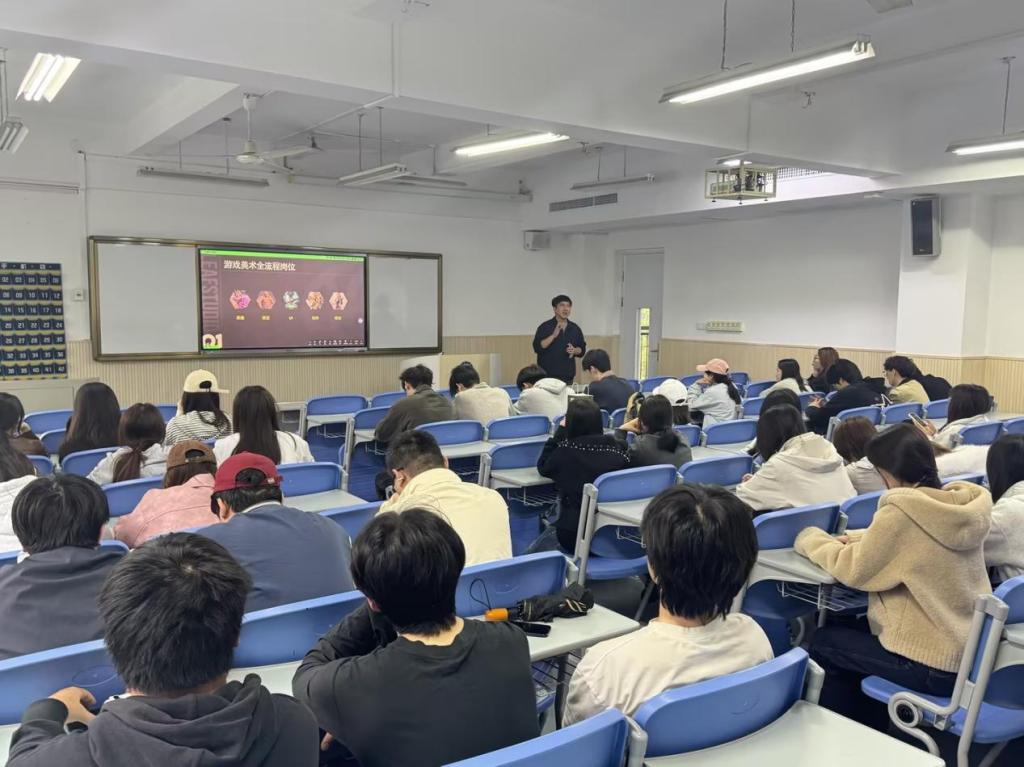 在互动环节,吴麟结合多年招聘经验,分享了如何通过作品集展现个人风格与技术深度、如何在面试中清晰表达设计逻辑、以及如何快速适应项目制工作节奏等游戏行业求职的核心技巧。现场气氛热烈,同学们认真记录、积极提问,纷纷表示对游戏美术行业有了更清晰的认识,也对自身能力提升方向有了更明确的规划。